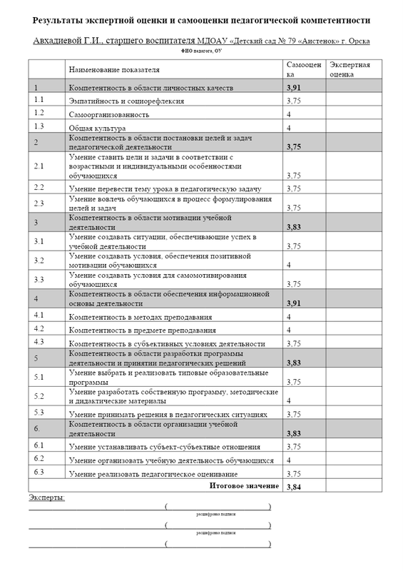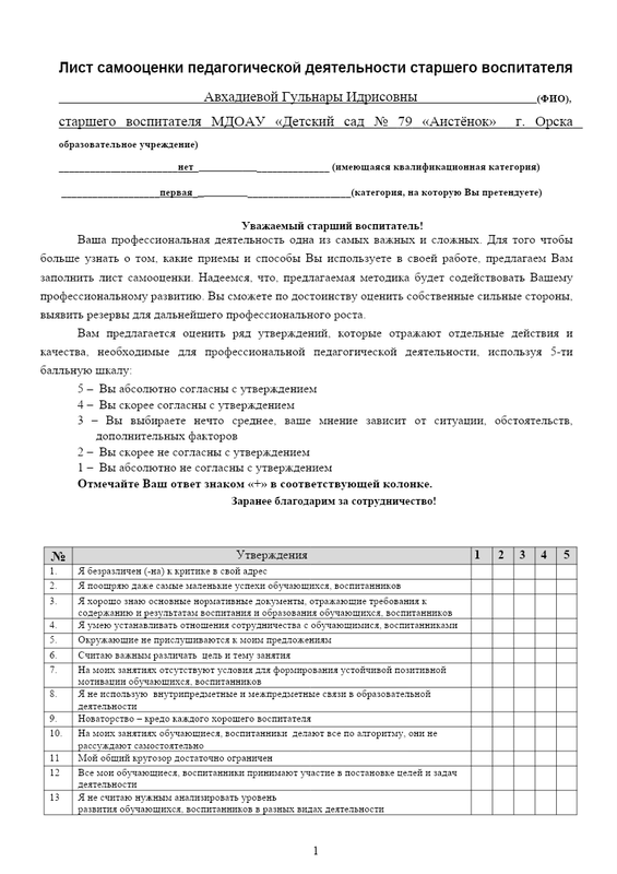 · Лист самооценки педагогической деятельности