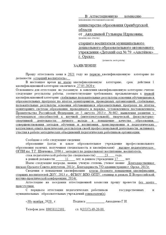 · Заявление